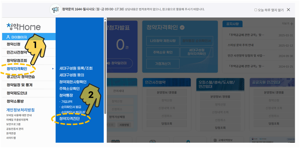 청약신청자격여부는 청약홈 사이트에게 확인히 가능합니다.