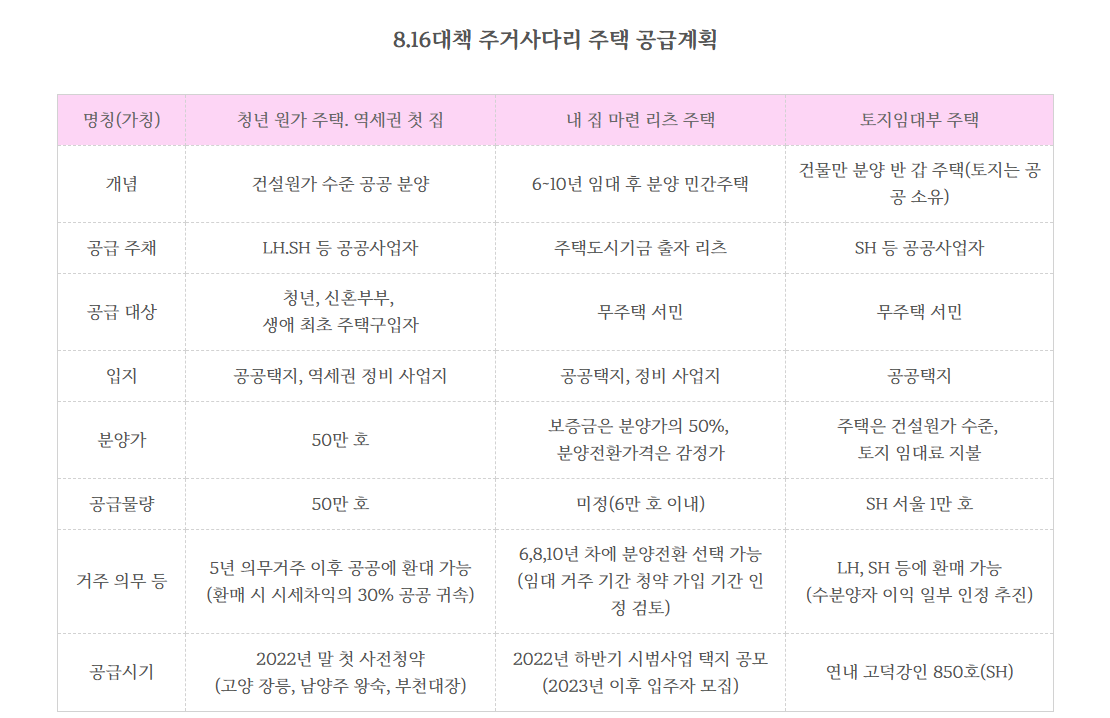 기존 공공분양 아파트(신혼희망타운, 공공주택)와 달리, 민간 아파트처럼 입지와 품질을 높이면서도 가격은 저렴하게 공급하는 것이 핵심!(2022년 8월16일 발표란 주택공급계획)